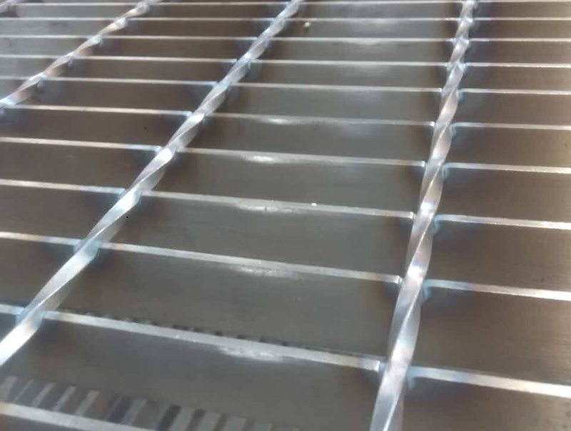 壓焊鋼格板是由負載扁鋼和橫桿(扭絞方鋼、方鋼、圓鋼、扁鋼等)按一定間距經緯排列,在高壓電阻焊機上焊接而成原板,經切割、切口、開孔、包邊等工序深加工而成客戶要求的成品。