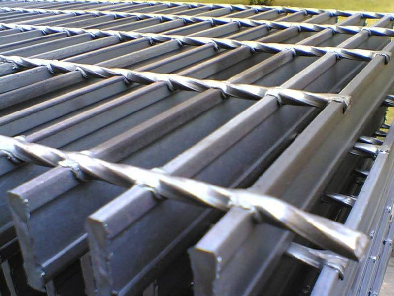 2、壓焊鋼格板橫桿:材質為Q235A或304不銹鋼的圓鋼、扭絞方鋼、方鋼或六角鋼。扭絞方鋼是由盤園經方模拉絲并扭絞而成,其常用規格有5*5、6*6、8*8mm等。